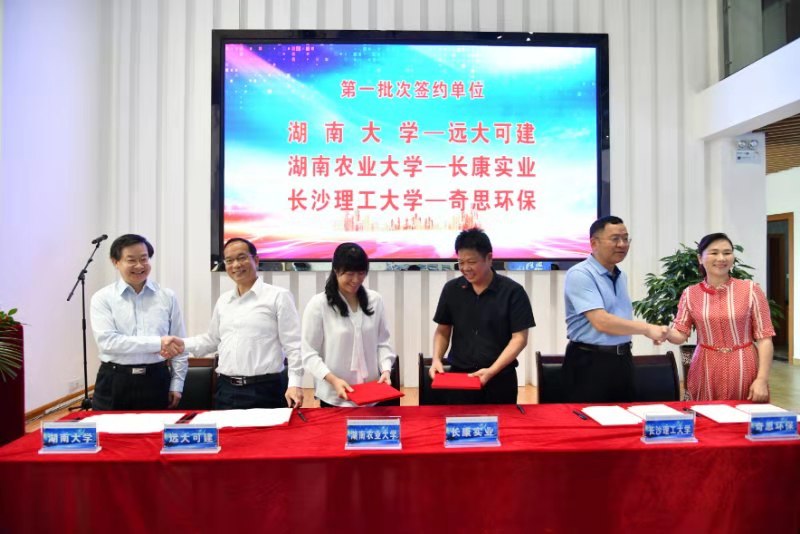 产学研签约仪式上,成果转化中心副主任李岳林和材料学院副院长范金成分别代表我校与湖南奇思环保设备制造有限公司和湖南金为新材料科技有限公司签订了产学研合作协议,黄立宏代表学校给企业授牌香港六宝合典资料大全产学研基地。