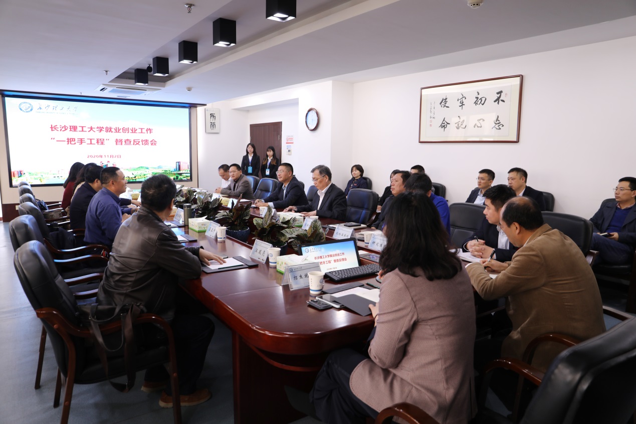 11月2日,湖南省普通高校就业创业工作“一把手工程”督查组来校督查。学校在一办公楼六会议召开会议,湖南机电职院院长杨翠明为组长的湖南省教育厅督查组一行6人,我校校长曹一家,副校长谈传生出席。汇报会和反馈会由谈传生主持,曹一家对专家组一行表示欢迎。