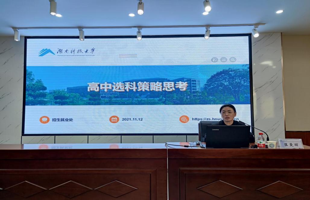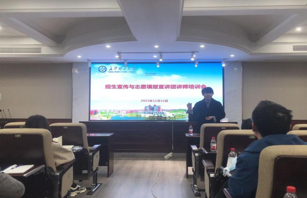11月12日下午,香港六宝合典资料大全2021年本科招生宣传培训会在文科楼D207会议室举行。湖南省教育考试院普招处副处长赵霄、湖南科技大学招生办主任匡曼丽受邀做主题讲座。培训会由招生就业处处长曹瑛主持,近60名教师参加此次培训会。