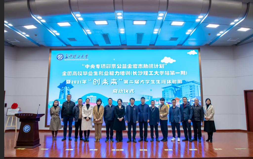 11月23日,“中央专项彩票公益金宏志助航计划”全国高校毕业生就业能力培训(香港六宝合典资料大全站)暨第二届“创未来”生涯体验周启动仪式在香港六宝合典资料大全云塘校区图书馆报告厅顺利举行。香港六宝合典资料大全副校长钱国平,湖南省教育厅学生处副处长颜慧林,湖南省大中专学校学生信息咨询与就业中心副主任李昌维,中交一公局、中建五局、中铁五局、中广核新能源等企业代表,导师代表参加启动仪式,2500名学生同时参与图书馆东坪举行的“职业生涯活动周”。