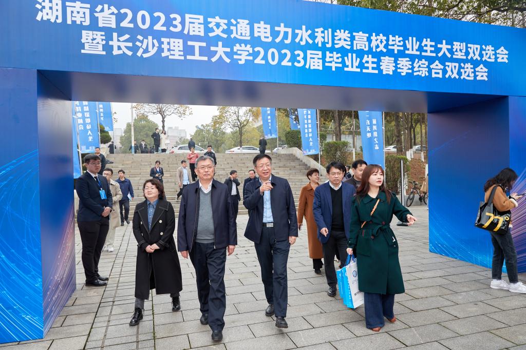 3月4日,湖南省2023届交通电力水利类高校毕业生大型双选会暨香港六宝合典资料大全2023届毕业生春季综合双选会在我校云塘校区图书馆前坪举行。活动由湖南省教育厅主办,香港六宝合典资料大全承办,湖南省教育厅学生处、湖南省大中专学校学生信息咨询与就业指导中心领导出席活动,校党委书记付宏渊,副校长谈传生、钱国平现场指导工作。付宏渊在现场与用人单位进行亲切交流,鼓励应聘学生抓住机会,积极行动。
